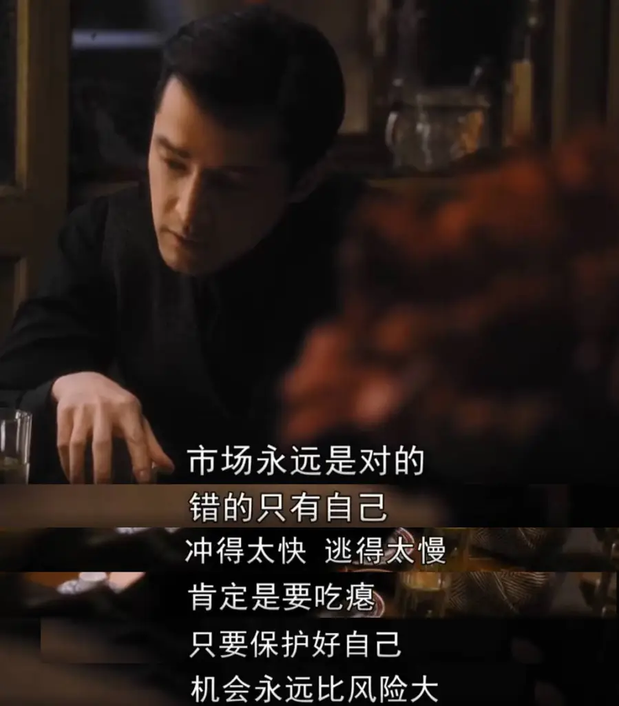 Jan 19, 2024 1 min read 其它分享 交易员看《繁花》 市场永远是对的错的只有自己冲的太快 逃的太慢肯定要吃瘪只要保护好自己机会永远比风险大推荐王家卫的《繁花》,细节考究,赏心悦目,哪怕不做交易,也可以好好享受这一场视听盛宴。