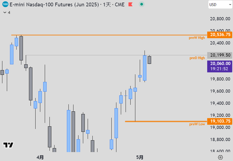 May 5, 2025 1 min read 每周分析 250505每周不不 Ep13 经济新闻周一晚间,ISM非制造业指数;周四凌晨2点,美联储 FOMC 利率决议。NQ月线周线日线BTC月线周线日线